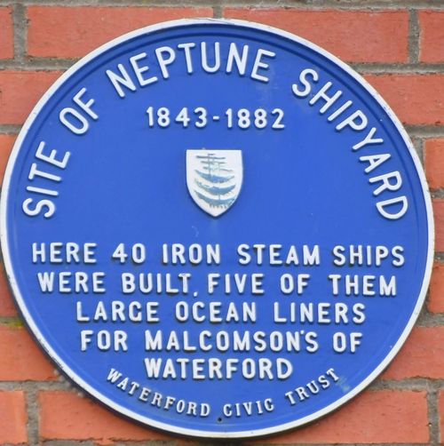 In 1843 the Neptune Ironworks opened at Park Road as a repair yard for the growing fleet of ships of the Malcolmson family. A Quaker family, the Malcolmsons were major industrialists in the area and had established their cotton factory in Portlaw in the 1820s. At the end of 1846 the first steamer built in the Neptune yard was launched, the SS Neptune.