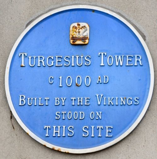 The name Turgesius Tower was first used by the historian Charles Smith in 1746 and was probably located roughly where the AIB Bank stands at the intersection of Barronstrand Street and the Quay. In all probability this is the tower which is referred to in the minutes of Waterford Corporation in 1700 when Joseph Ivie was authorised ‘to pull downe the castle at the end of the Key levell with the towne wall’. In the Ryland map (1673) the tower on this site appears as a battlemented structure of three floors, while Philips (1685) represents it as a rectangular tower.