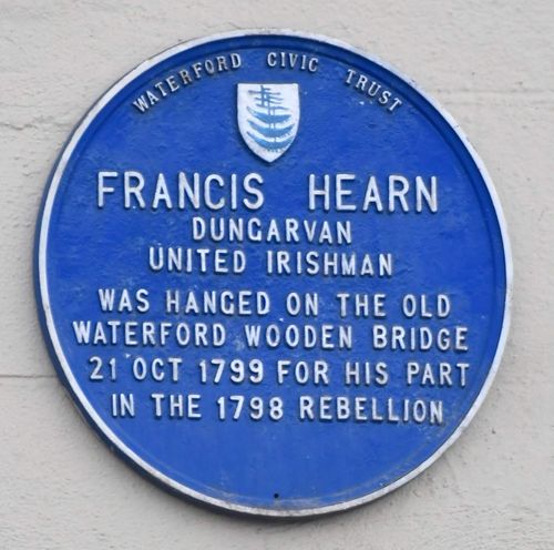 From a distinguished clerical family Francis Hearne was hanged on Waterford Bridge in 1799 for United Irish activities. Three of his uncles were Catholic priests. His uncle Thomas was the dean of the diocese and another uncle Francis was rector of the Irish College at Louvain in Belgium and was a noted linguist, fluent in English, Irish, Latin, French, Italian, Spanish, German, Arabic and Russian as well as Flemish.