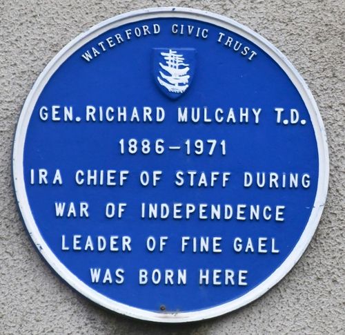 Richard Mulcahy was born in Manor Street, Waterford in 1886. He was educated at Mount Sion Christian Brothers School and later in Thurles, County Tipperary, where his father was the postmaster. Mulcahy joined the Irish Volunteers in 1913 and was also a member of the Irish Republican Brotherhood and the Gaelic League.