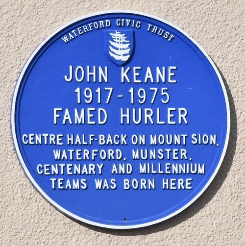 John Keane (1917-1975) was one of the greatest hurlers in the history of the game. He excelled at hurling during his school days at Waterford’s Mount Sion CBS, and rapidly made his mark as a great player for the club, and soon after, for the county, where he played at Minor level and won Munster and All Ireland honours in 1934. He was Waterford’s and Mount Sion’s accepted leader on the field for virtually all his long career.