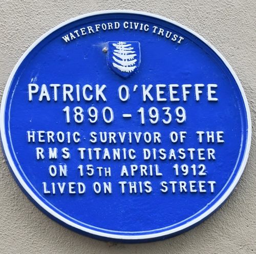 On the 15th of April 2019 (the 107th anniversary of the exact day the Titanic sank), Waterford Civic Trust unveiled a Heritage Blue Plaque remembering Waterford man, Patrick O’Keeffe, who was a survivor of one of the greatest maritime disasters of all time, the sinking of the RMS Titanic, on the 15th of April 1912.