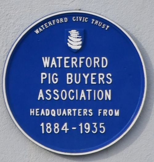 Waterford Civic Trust unveiled a blue plaque in Ballybricken marking the headquarters of the Pig Buyers’ Association, 1884-1935. The pig buyers were central to the economy of Waterford, and also played a major role in its social and political life. They were influential in the formation of local opinion, a fact which became very apparent during a by-election in the city in 1891.