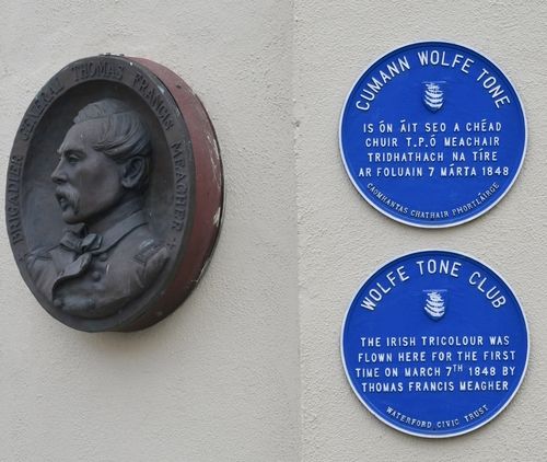 On 7 March 1848 Meagher raised the Irish Tricolour for the first time at 33 The Mall in Waterford, in protest at English rule in Ireland. In the same year he participated in an abortive rising organised by Young Ireland. Meagher was sentenced to death, but this sentence was commuted to transportation to Van Diemen’s Land (modern day Tasmania). Escaping in 1852, he went to America. In the Civil War (1861-1865). He was the brigadier general commanding the Irish Brigade and under his leadership it fought in some of the war’s bloodiest battles – including Bull Run, Antietam and Fredericksburg. After the war, he was appointed Acting Governor of Montana. He died on 1 July 1867, in circumstances which still arouse controversy.